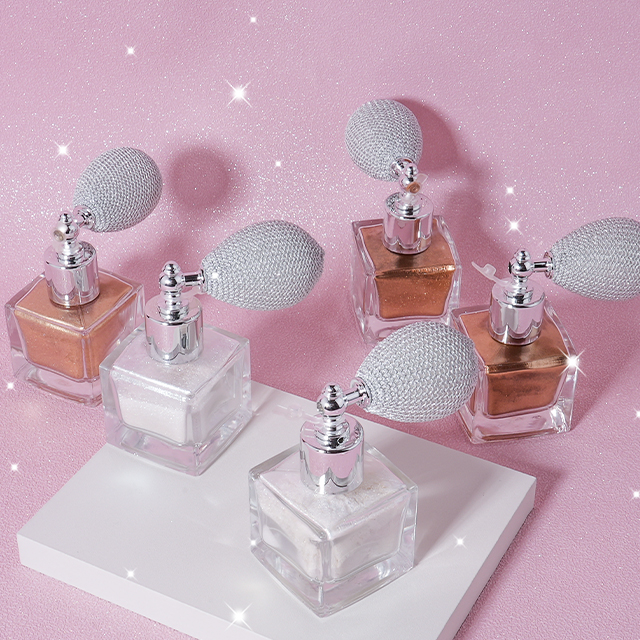 Perfume Spray DesignWith a Hand-woven airbag, justpress to spray the shining powderand exude a charming fragrance Natural LusterFine luster, brighten your face Skin-Friendlyhighlighterpowder is softand delicatenot sticky Elegant French BottleAs a best gift with strongFrench style